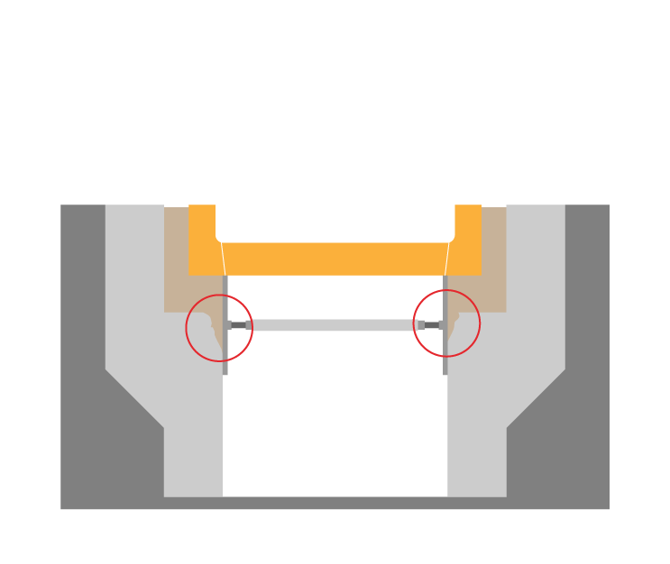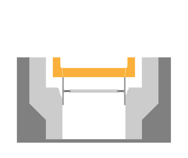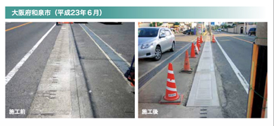 - ●接触構造の改良により、ガタガタ騒音を抑制するとともに、側溝の受けるダメージを低減し、耐久性が向上します。