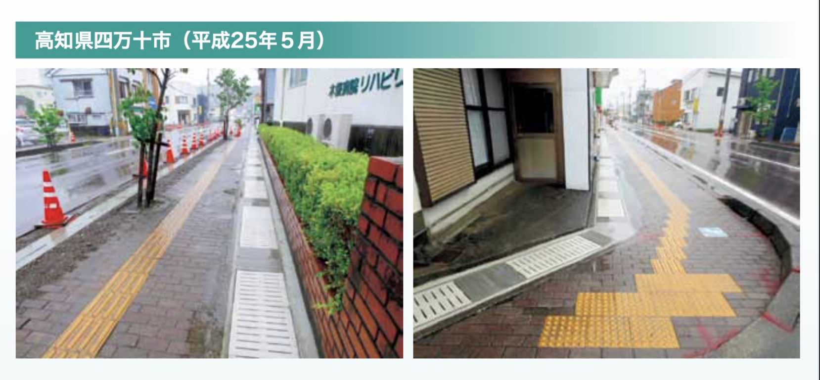 - ●細目仕様のスリット穴と細かい粒状模様の採用で、誰もが安心して安全に通行できます。