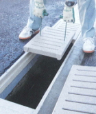 - ●全ての蓋に集水用のスリットがあるので、安定した集水効果が得られ、粒状の模様がウエット時にも高いノンスリップ性を発揮し、樹脂製なので摩耗にも強い構造です。